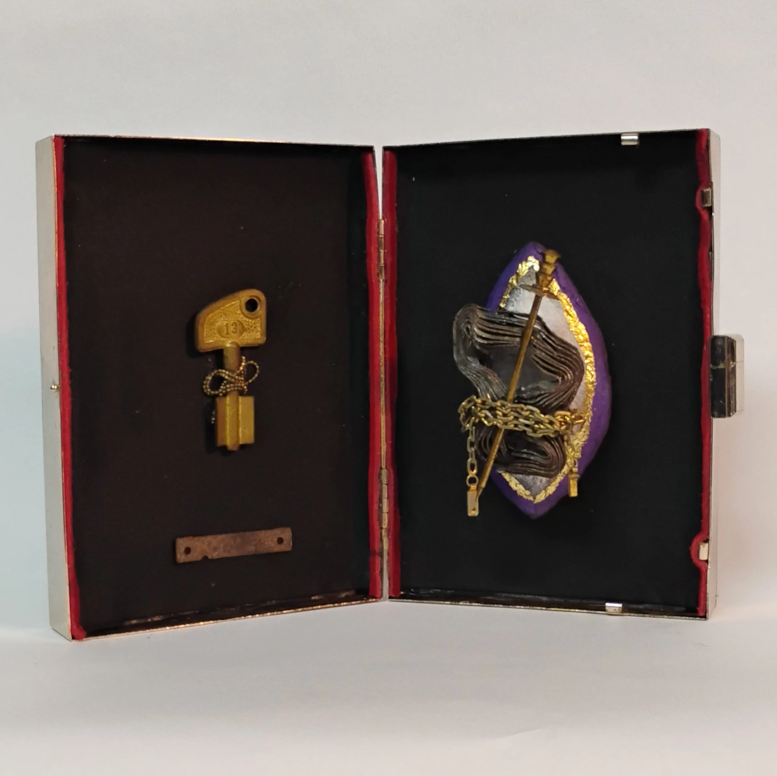 Objeto metal, papel machê, tecido.